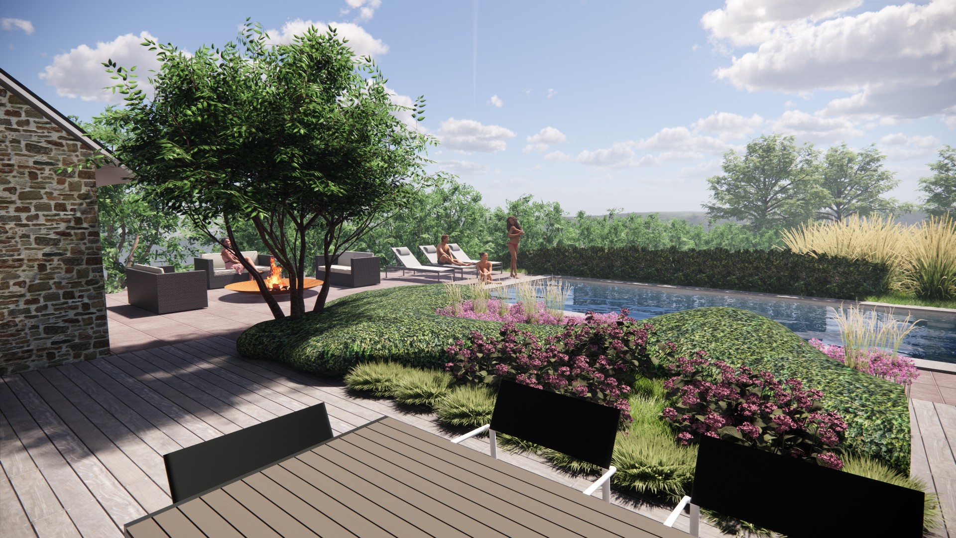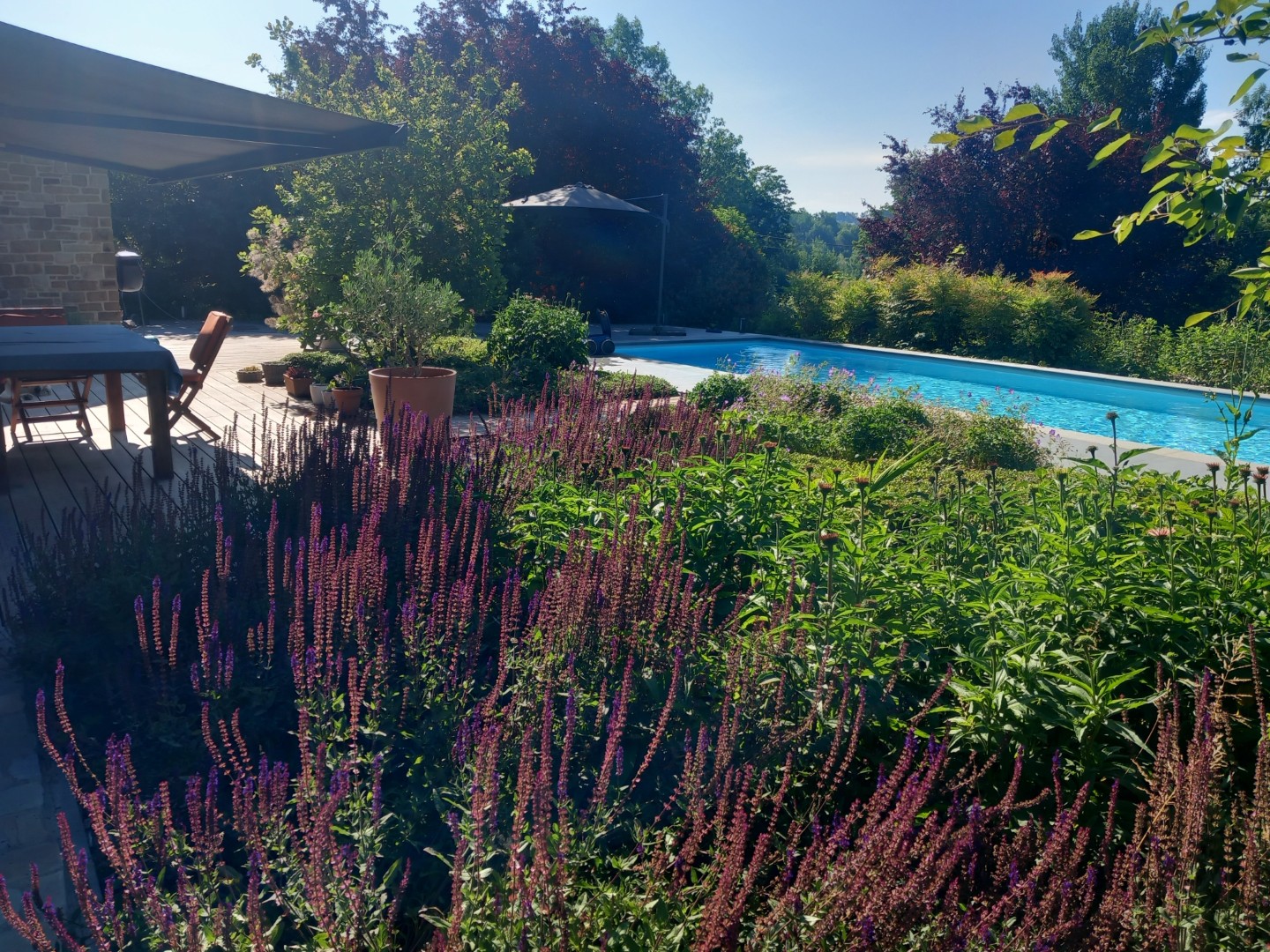 À Gesves, ce projet de rénovation paysagère démontre qu'un jardin peut évoluer pour offrir une expérience totalement nouvelle, même autour d'une structure préexistante. Le point central, une piscine déjà installée, manquait de lien avec son environnement. En tant qu'architecte de jardin, mon intervention a consisté à recréer une cohérence globale en repensant intégralement les terrasses et l'ambiance végétale pour transformer cet espace de loisirs en un véritable refuge de biodiversité.